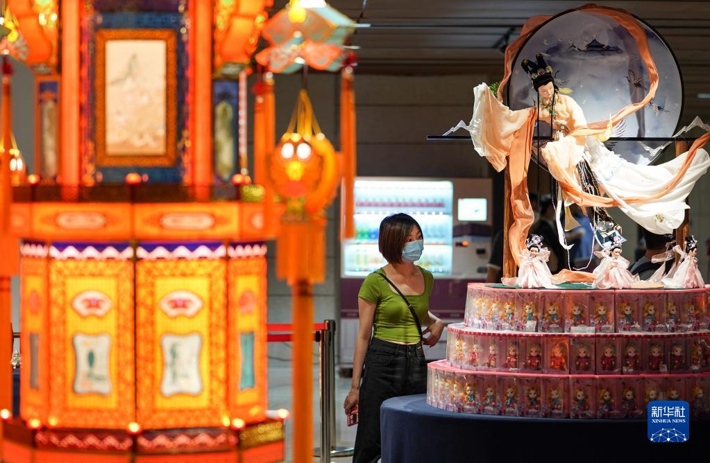 9月10日,觀(guān)眾在中國工藝美術(shù)館(也稱(chēng)中國非物質(zhì)文化遺產(chǎn)館)觀(guān)看非遺工藝品。中國工藝美術(shù)館舉辦中秋專(zhuān)場(chǎng)系列活動(dòng),集中展示花絲鑲嵌、北京雕漆、北京絹人等非遺項目。