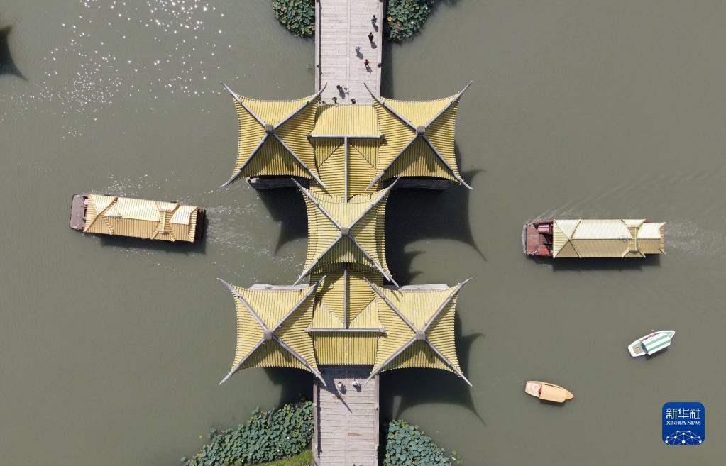 9月10日,游客乘坐游船在江蘇揚州瘦西湖風(fēng)景區游玩(無(wú)人機照片)。