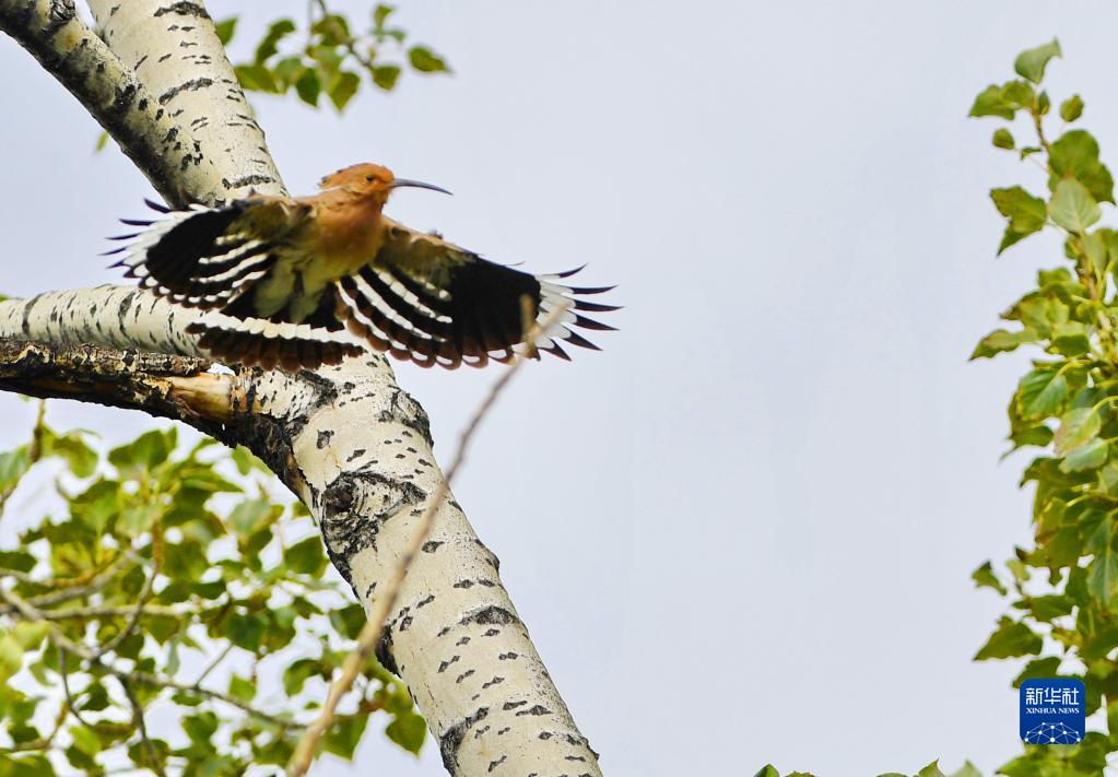 在西藏拉薩市,戴勝在楊樹(shù)間"飛舞"(9月7日攝)。