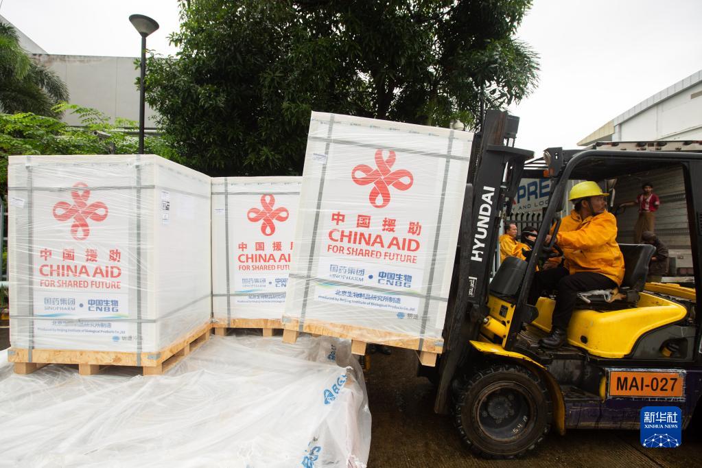 9月9日,在緬甸仰光國際機場(chǎng),工作人員搬運中國援助的新冠疫苗。