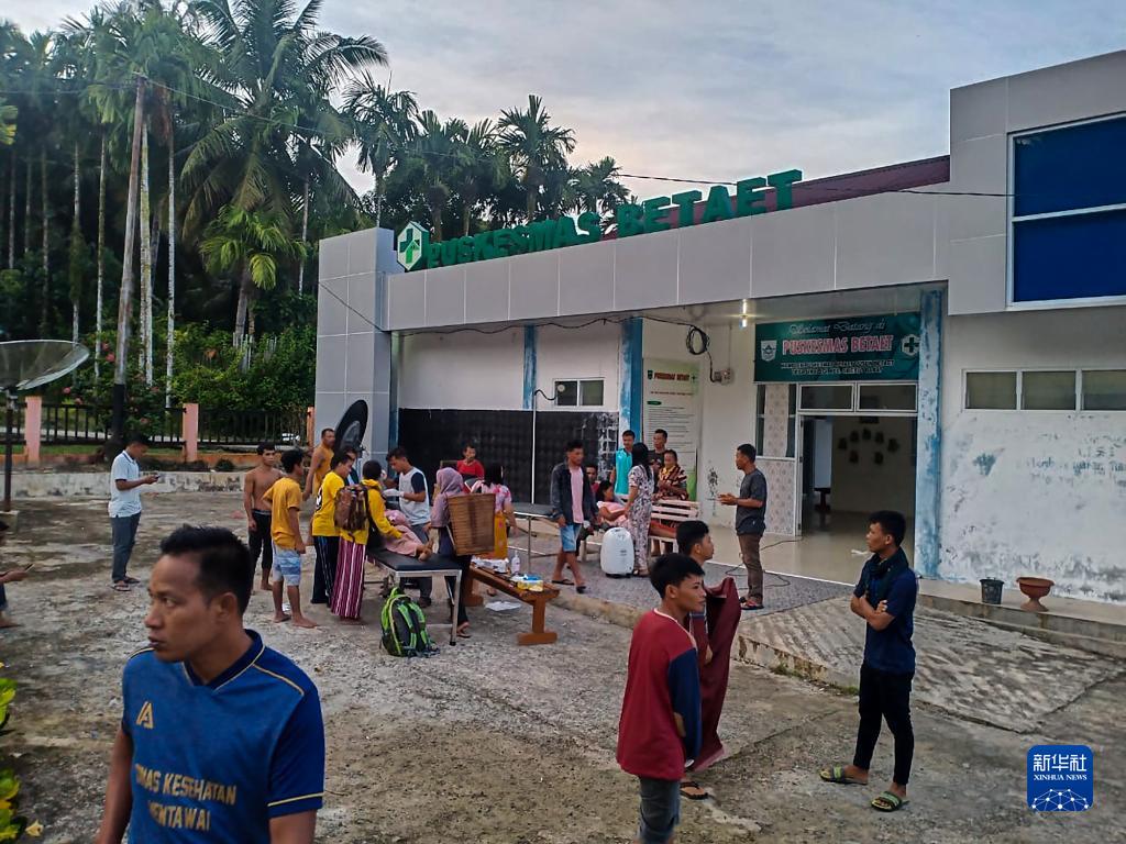 9月11日,人們站在印尼西蘇門(mén)答臘省明打威群島一處醫療機構外(手機拍攝)。