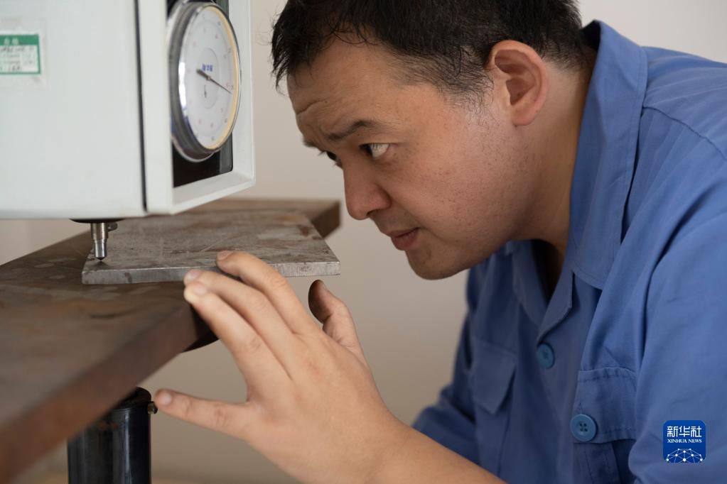 羅宇航在鄭州工務(wù)機械段焊軌車(chē)間進(jìn)行硬度試驗(9月9日攝)。