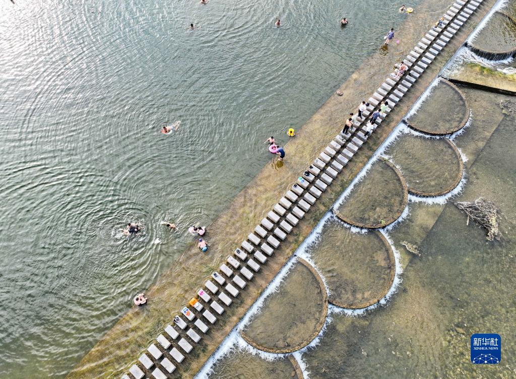 9月11日,游客在湖南省永州市道縣梅花鎮貴頭村游玩(無(wú)人機照片)。