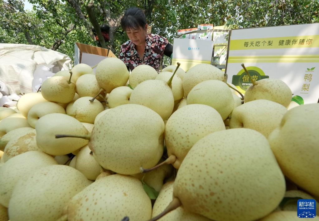 9月12日,河北省晉州市周家莊鄉果農將采摘的鴨梨裝箱。