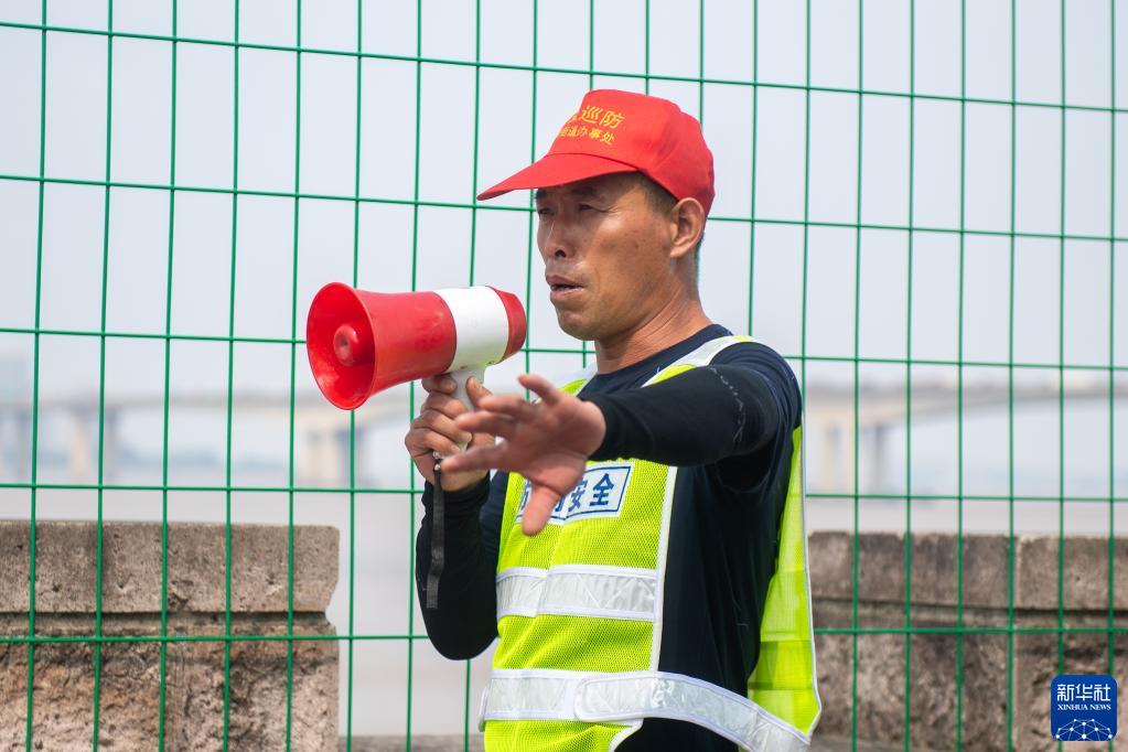 連日來(lái),為保障觀(guān)潮市民和游客的安全,浙江省杭州市蕭山區新街街道的防潮隊員高哨峰、傅幫華、賈文軍忙著(zhù)在江堤上巡邏。他們要看護一段1.9公里長(cháng)的錢(qián)塘江岸,每天負責勸導觀(guān)潮人遠離危險地段、勸返下江堤垂釣的釣魚(yú)人、檢查江岸邊的防護設施,被稱(chēng)為“喊潮人”。目前錢(qián)塘江兩岸共有“喊潮人”372名。