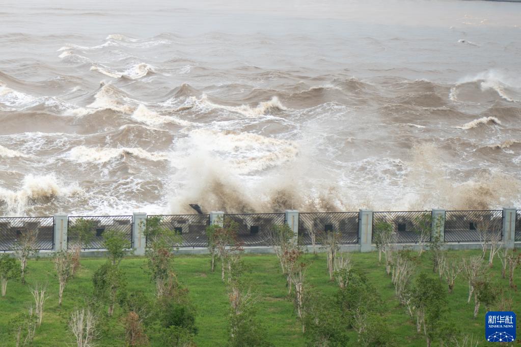 9月12日,錢(qián)塘江潮水拍打江堤形成巨浪。