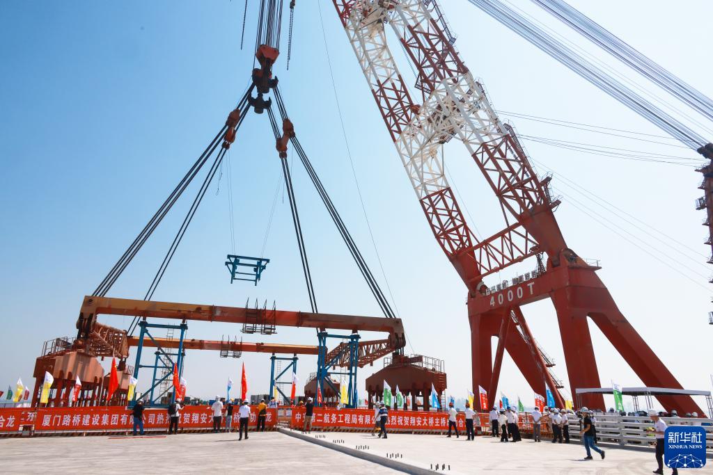9月12日拍攝的廈門(mén)翔安大橋主橋成功合龍現場(chǎng)。