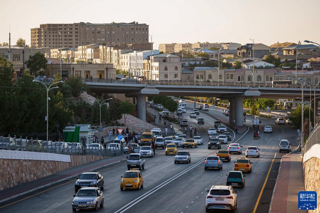 9月3日,在烏茲別克斯坦撒馬爾罕,車(chē)輛行駛在道路上。
