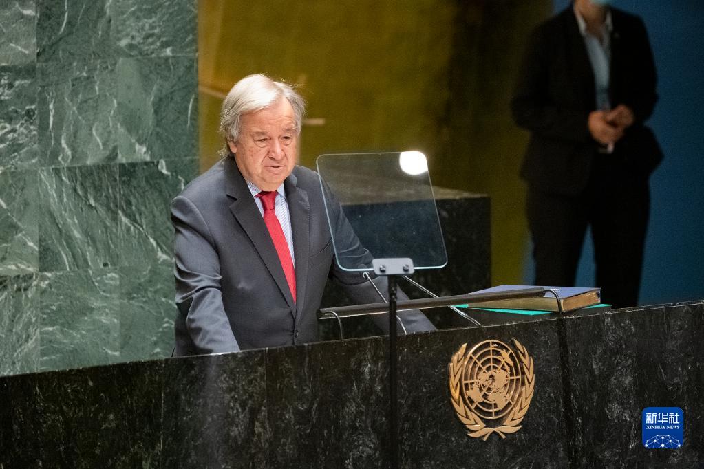 9月12日,在位于紐約的聯(lián)合國總部,聯(lián)合國秘書(shū)長(cháng)古特雷斯在第76屆聯(lián)合國大會(huì )閉幕會(huì )上發(fā)表講話(huà)。