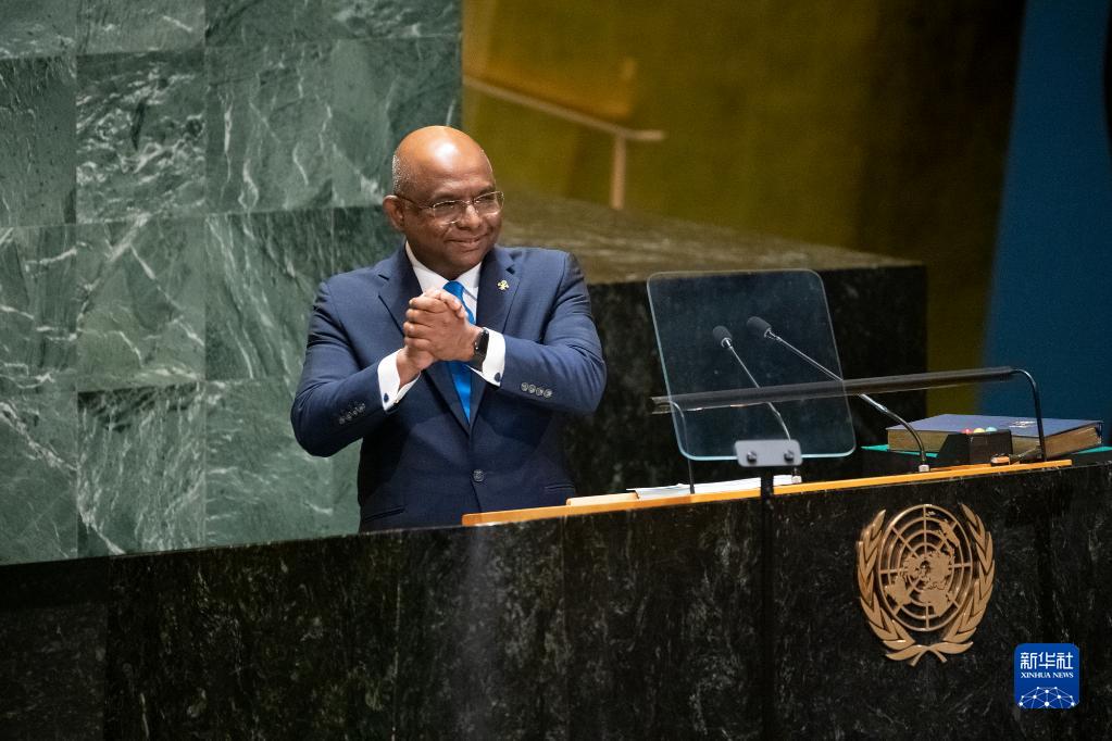 9月12日,在位于紐約的聯(lián)合國總部,第76屆聯(lián)合國大會(huì )主席沙希德在第76屆聯(lián)合國大會(huì )閉幕會(huì )上發(fā)表講話(huà)。