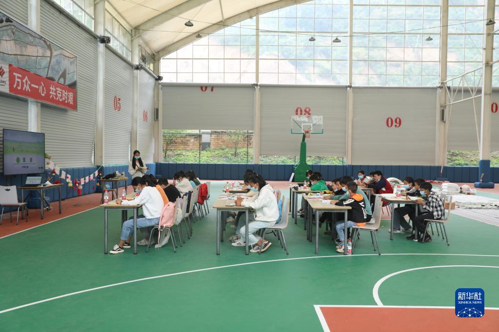 9月14日,在石棉縣王崗坪鄉,學(xué)生在國家能源集團大渡河大崗山公司提供的場(chǎng)地復課。