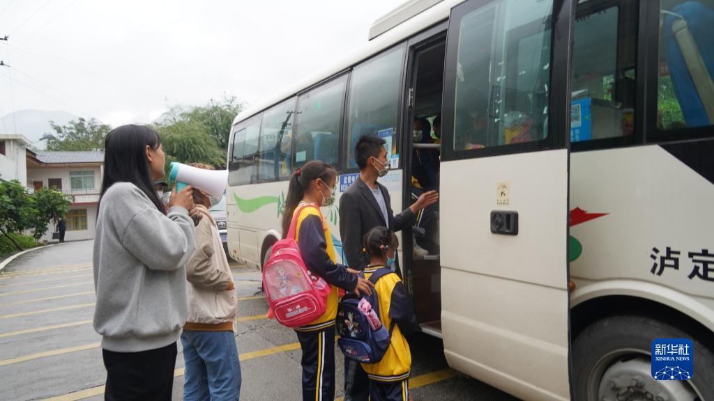 9月14日,學(xué)生從瀘定縣興隆鎮中心小學(xué)安置點(diǎn)乘坐大巴轉移到二郎山片區寄宿制學(xué)校。