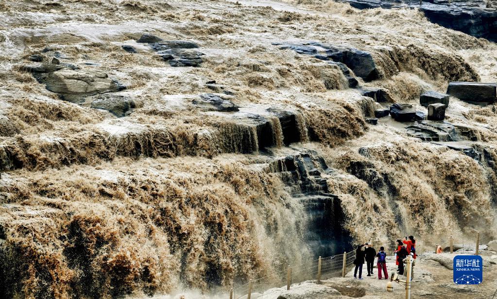 近日,秦晉交界的黃河壺口瀑布水量大增,形成綿延數百米的壯美瀑布群。