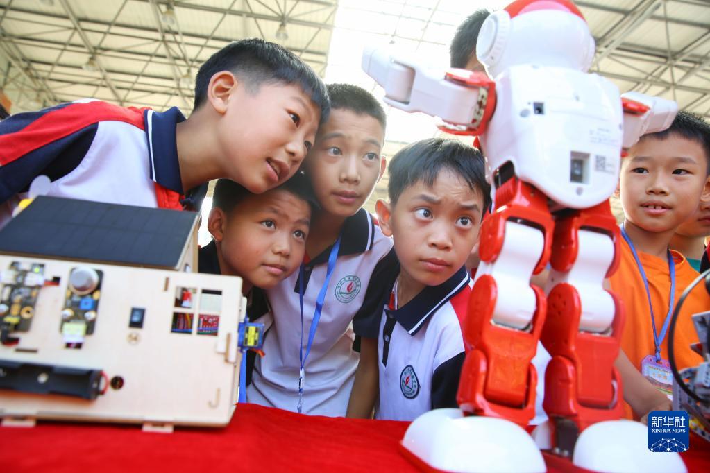 9月15日,在湖南省邵陽(yáng)市隆回縣思源實(shí)驗學(xué)校舉行的科普日宣傳活動(dòng)現場(chǎng),學(xué)生們觀(guān)看機器人表演。