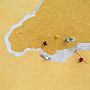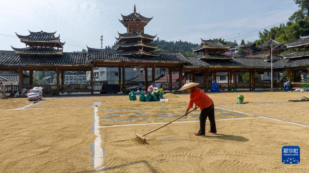 仲秋時(shí)節,農民利用晴好天氣晾曬收獲的農作物,鄉間一派豐收的圖景。
