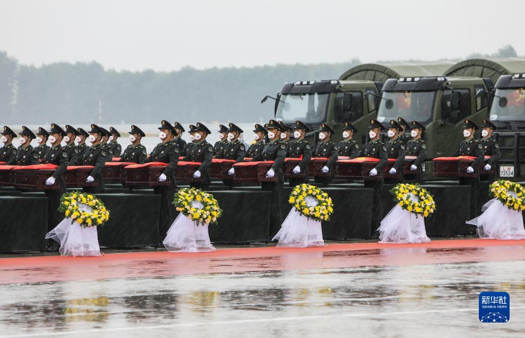 當日,第九批在韓中國人民志愿軍烈士遺骸由我空軍專(zhuān)機護送從韓國接回遼寧沈陽(yáng),88位志愿軍烈士遺骸及相關(guān)遺物回到祖國。