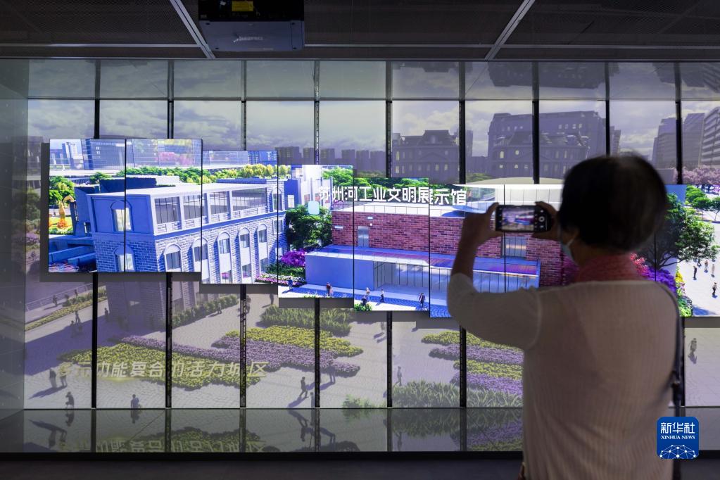 9月16日,在蘇州河工業(yè)文明展示館,參觀(guān)者拍攝未來(lái)蘇州河沿岸的規劃場(chǎng)景。