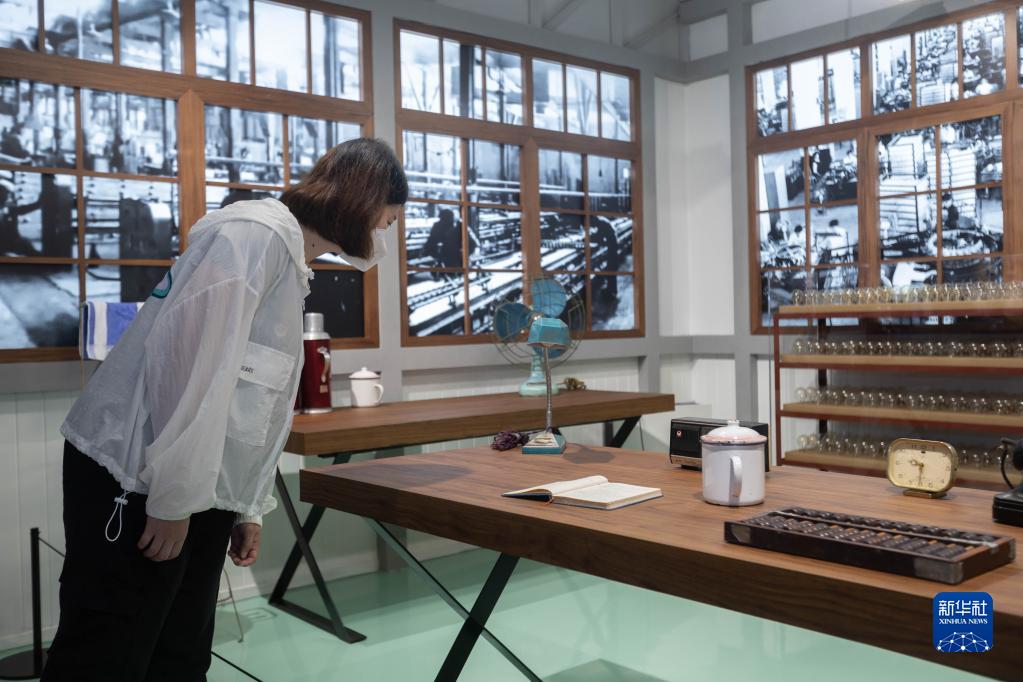 9月16日,在蘇州河工業(yè)文明展示館,參觀(guān)者觀(guān)看上海燈泡廠(chǎng)車(chē)間辦公室復原場(chǎng)景。