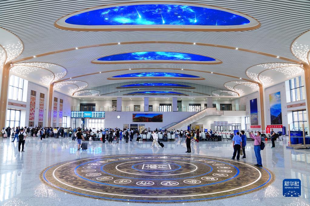 9月16日,旅客在新建淄博站南站房乘車(chē)出行。