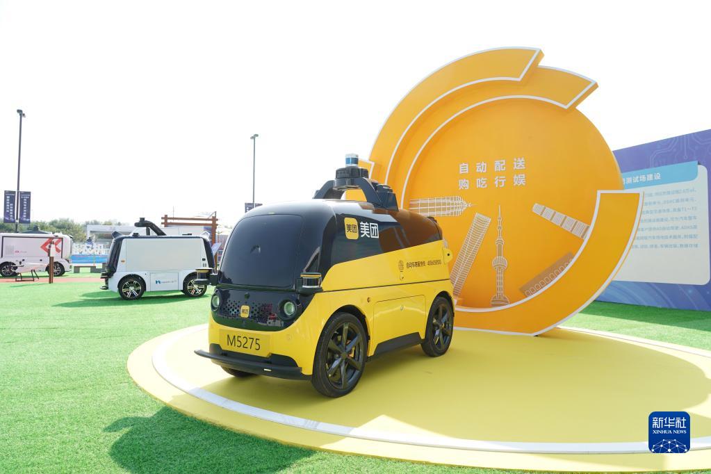 9月16日在2022世界智能網(wǎng)聯(lián)汽車(chē)大會(huì )室外展區拍攝的自動(dòng)配送車(chē)。