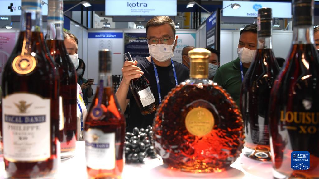 9月16日,在南寧國際會(huì )展中心“一帶一路”展區,觀(guān)眾在選購紅酒。