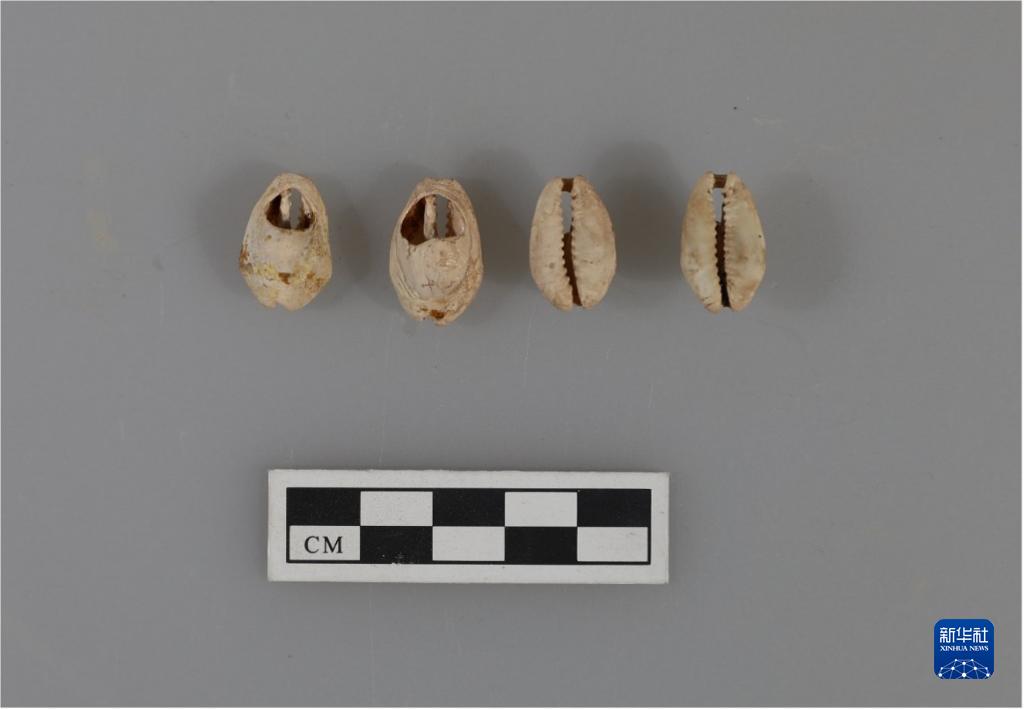 這是3月3日拍攝的鄭州商城遺址高等級貴族墓M2中出土的貝幣。