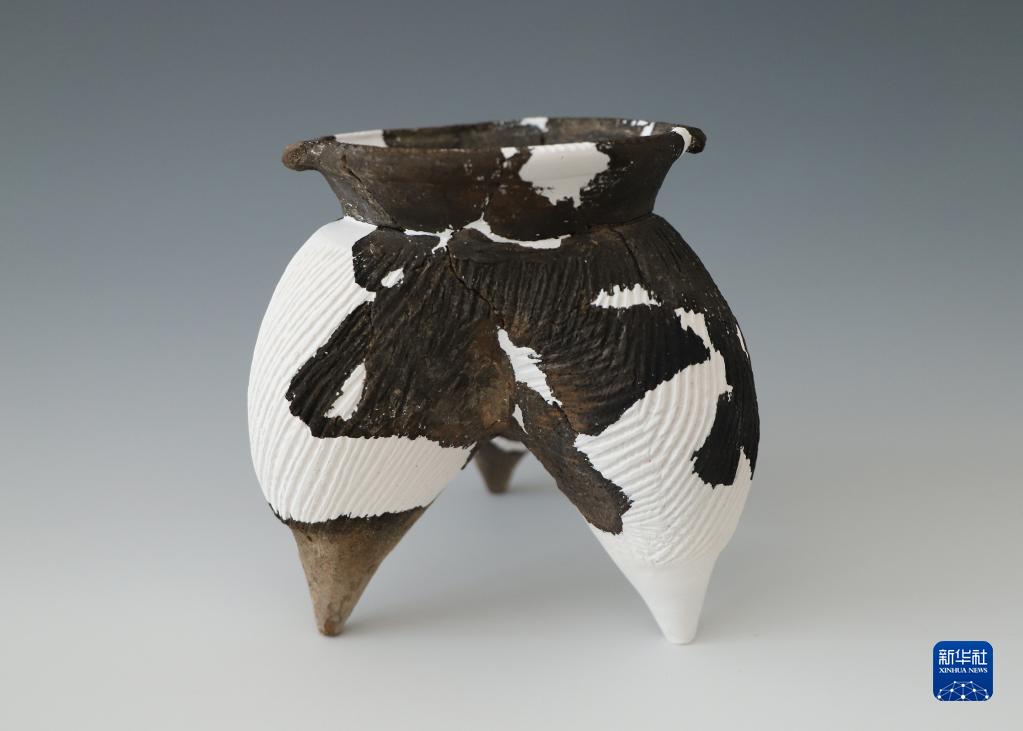 這是2021年10月25日拍攝的山西興縣碧村遺址出土的陶器。