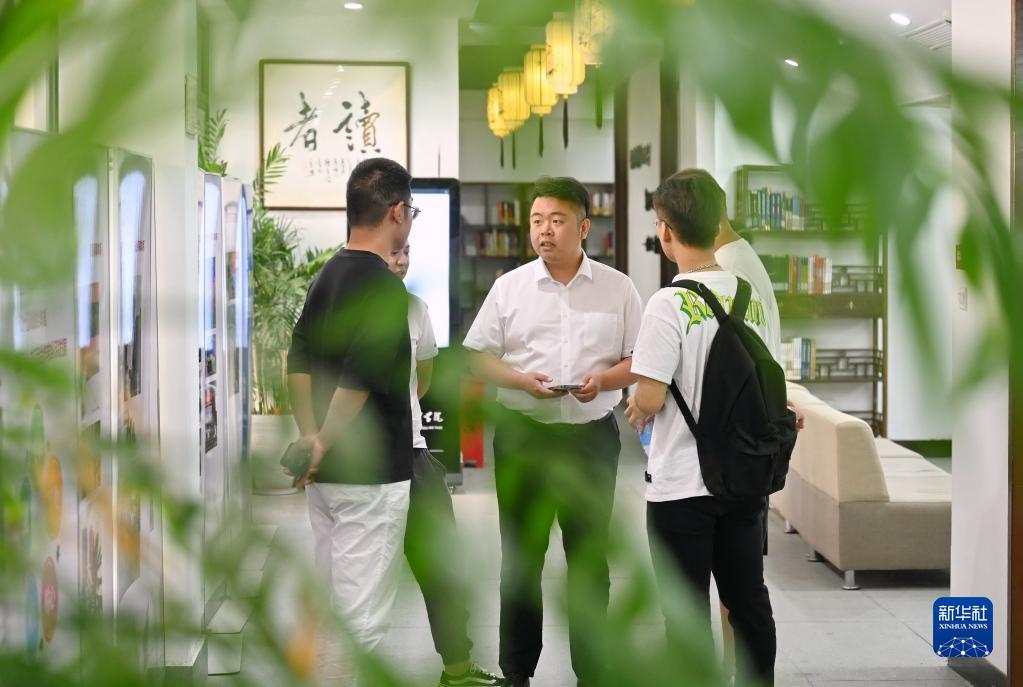 9月16日,林俊杰(中)在福州外語(yǔ)外貿學(xué)院與在校大學(xué)生創(chuàng )新創(chuàng )業(yè)團隊成員交流。