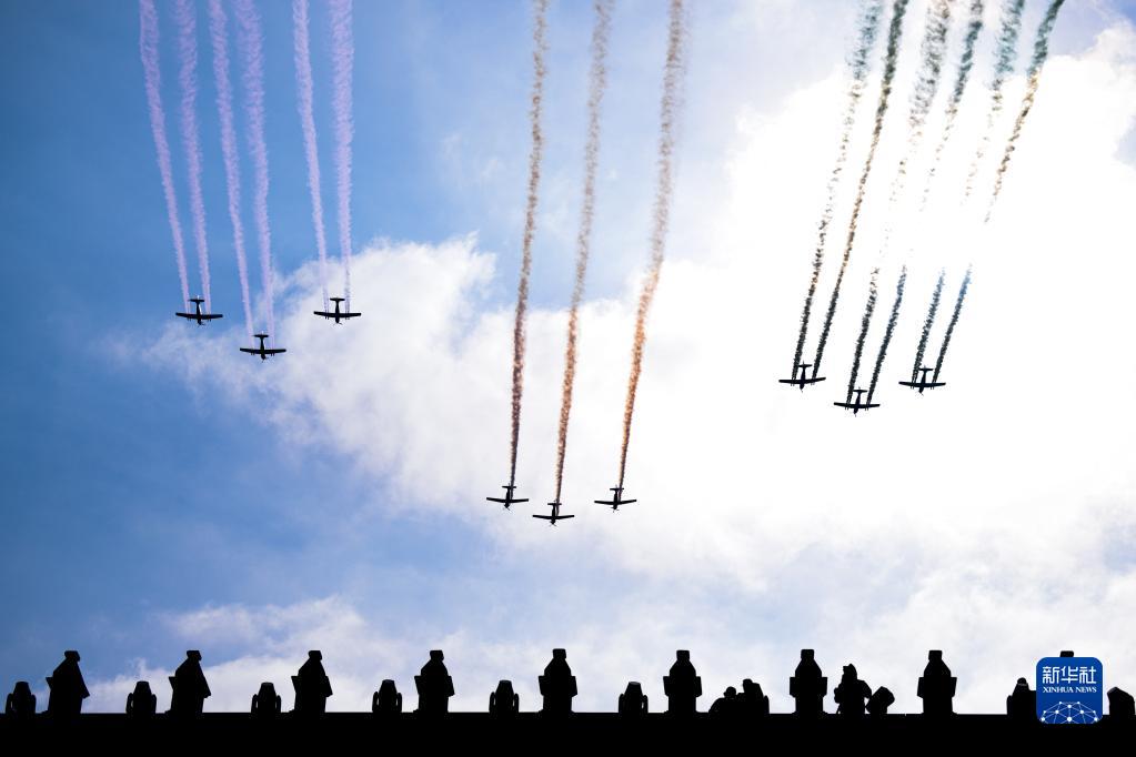 9月16日,在墨西哥首都墨西哥城,飛機編隊在閱兵式上表演。
