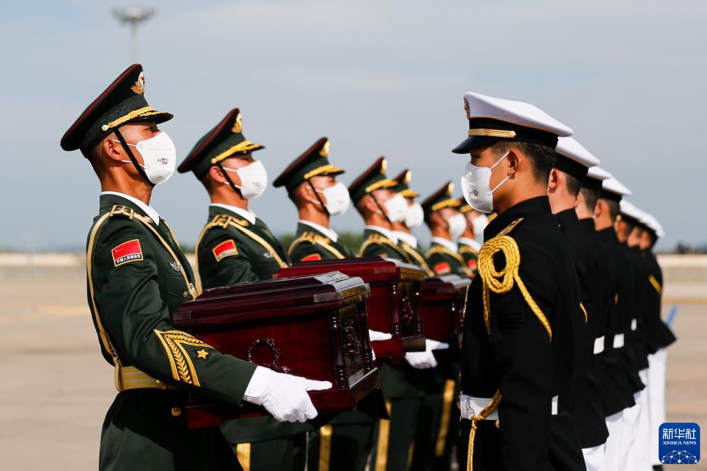 9月16日上午,中國和韓國在韓國仁川國際機場(chǎng)舉行第九批在韓中國人民志愿軍烈士遺骸交接儀式,確認交接88位志愿軍烈士遺骸及相關(guān)遺物。