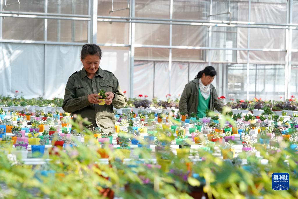 農民在興十四村現代農業(yè)示范園區大棚溫室中管理花卉作物(9月16日攝)。