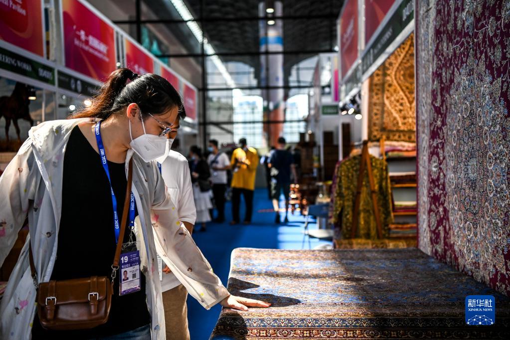 9月16日,在南寧國際會(huì )展中心,參觀(guān)者在選購地毯。