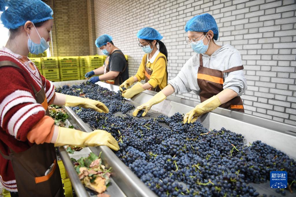 9月16日,工人在寧夏銀川市賀蘭山東麓的沃爾豐酒莊清洗、分揀釀酒葡萄。