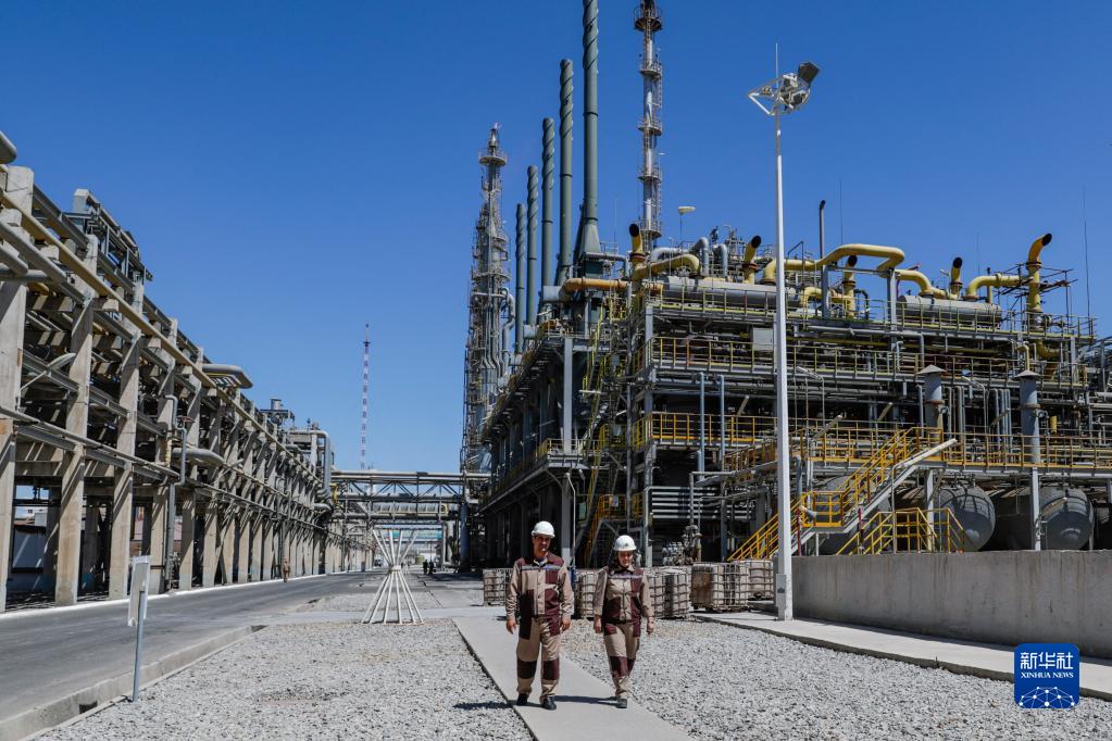 這是8月18日在烏茲別克斯坦納沃伊市拍攝的納沃伊氮肥股份公司聚氯乙烯工廠(chǎng)。