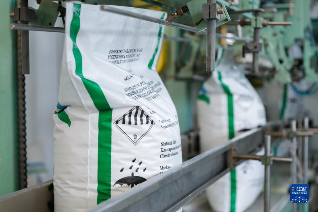 這是8月18日在烏茲別克斯坦納沃伊市拍攝的納沃伊氮肥股份公司聚氯乙烯生產(chǎn)線(xiàn)。