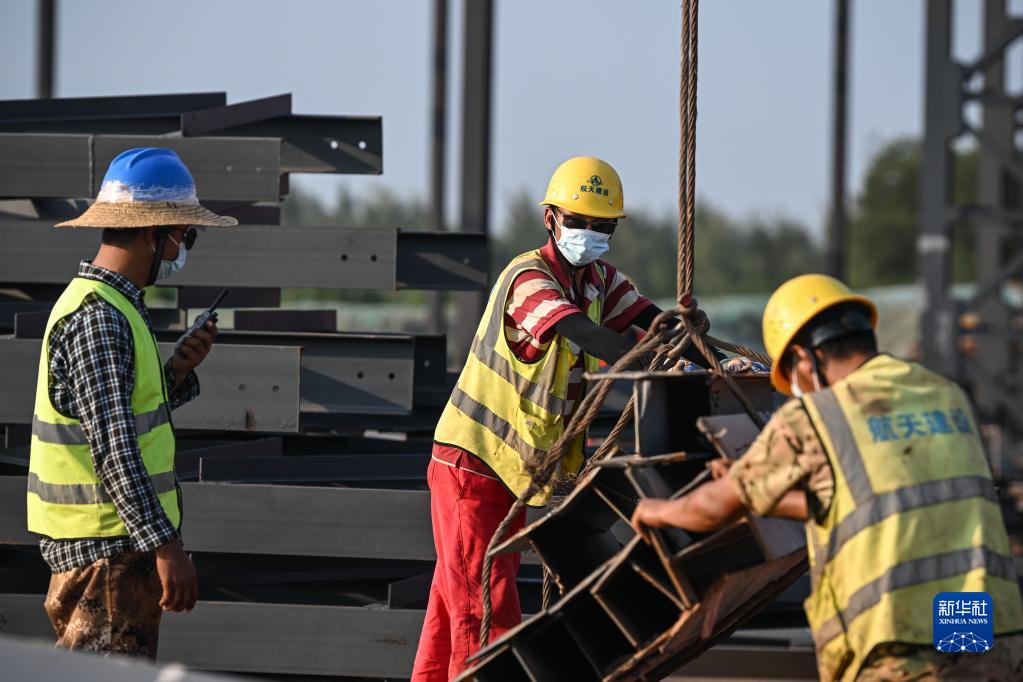 9月16日,工人在位于海南文昌的火箭裝配廠(chǎng)房項目工地施工。