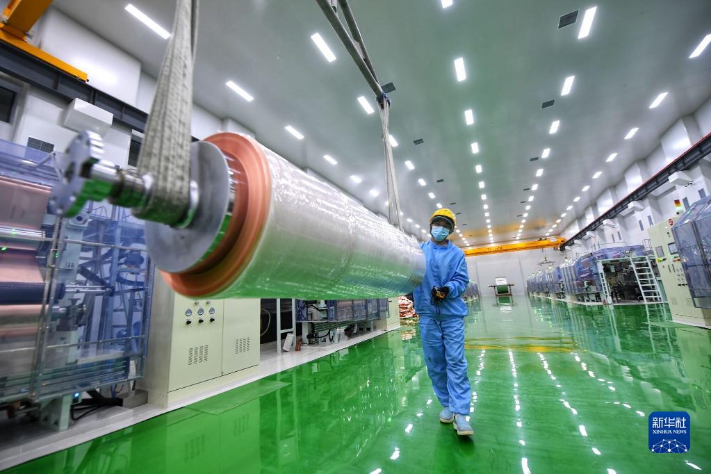 9月17日,山東省東營(yíng)經(jīng)濟開(kāi)發(fā)區合盛銅業(yè)公司工作人員在吊裝銅箔。