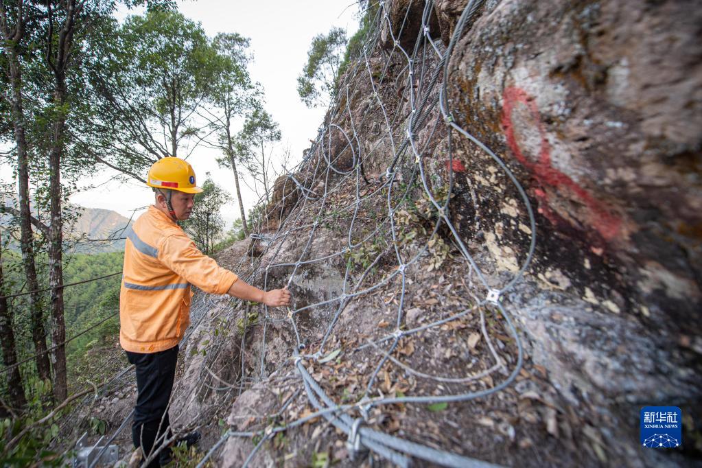 “我們看守員的任務(wù)是每天對山體進(jìn)行巡查、觀(guān)測,如果發(fā)現地質(zhì)災害就立刻發(fā)出預警,保障衢寧鐵路來(lái)往列車(chē)的安全運行?!笨词貑T趙偉燈說(shuō)。