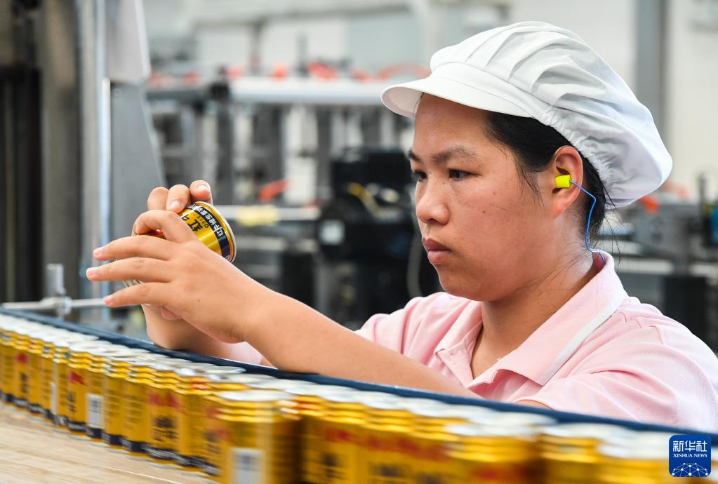 質(zhì)檢員在三水“水都基地”的紅牛維他命飲料公司生產(chǎn)線(xiàn)檢查產(chǎn)品外觀(guān)(9月17日攝)。