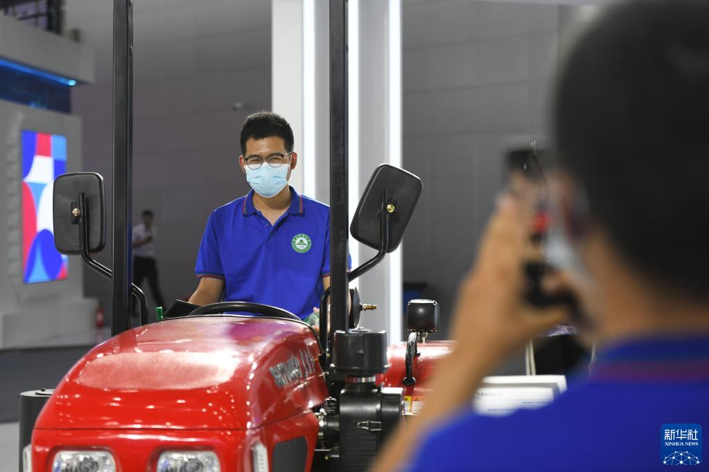 9月20日,來(lái)自安徽農業(yè)大學(xué)的學(xué)生在2022世界制造業(yè)大會(huì )參觀(guān)農機展。