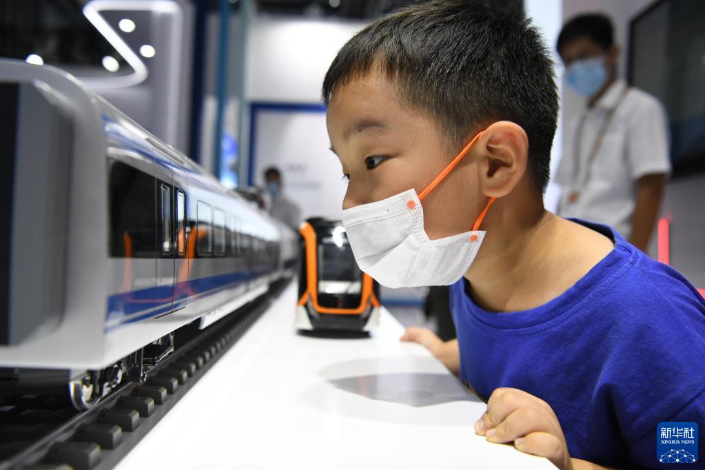9月20日,在2022世界制造業(yè)大會(huì )上,小朋友在中國中車(chē)展臺參觀(guān)。