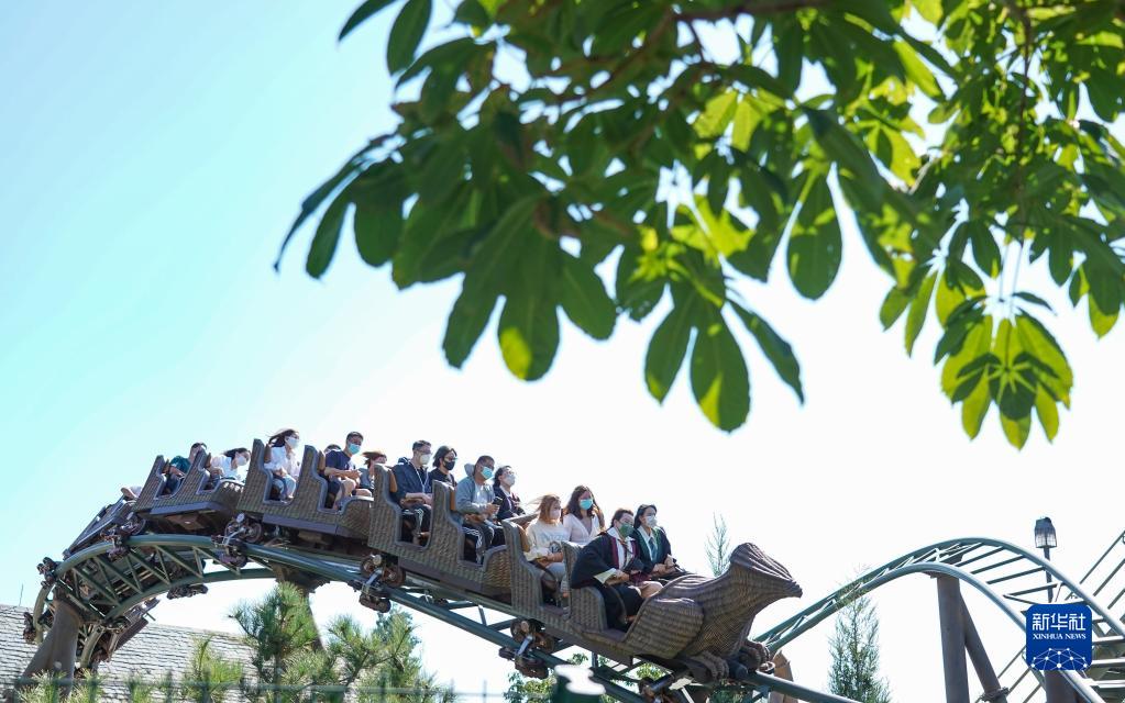 9月20日,游客在北京環(huán)球影城體驗“鷹馬飛行”。