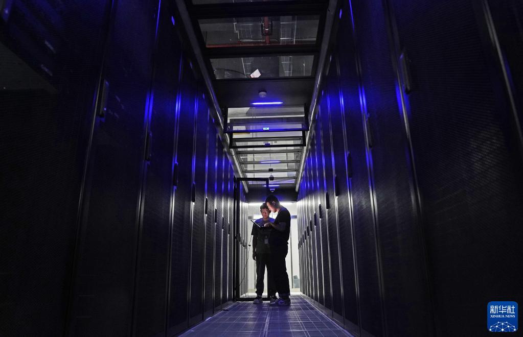 9月20日,在位于南昌經(jīng)濟技術(shù)開(kāi)發(fā)區的中國聯(lián)通智·云數據中心,工作人員檢查服務(wù)器運行情況。