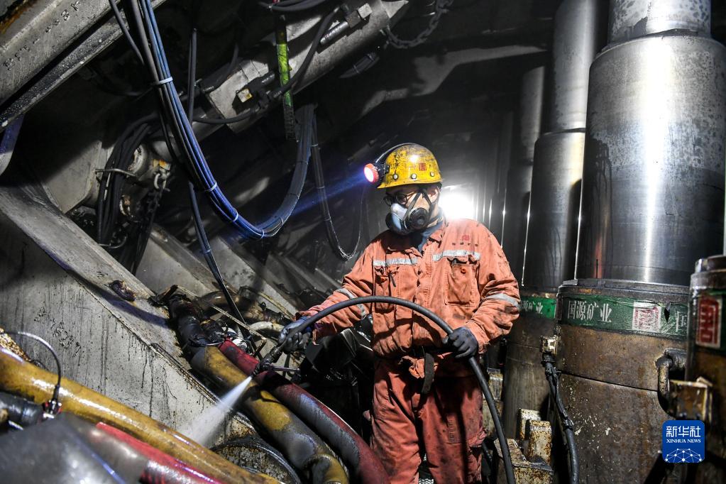 工人在龍王溝煤礦礦井下進(jìn)行降塵作業(yè)(9月20日攝)。