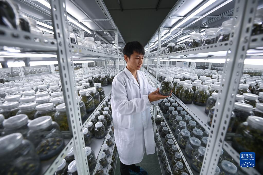 9月21日,在杭州市臨安區昌化鎮中草藥種植基地,郭二彪在育苗室內查看金線(xiàn)蓮的育苗情況。農業(yè)專(zhuān)業(yè)研究生畢業(yè)的郭二彪目前是中草藥種植基地的技術(shù)骨干。