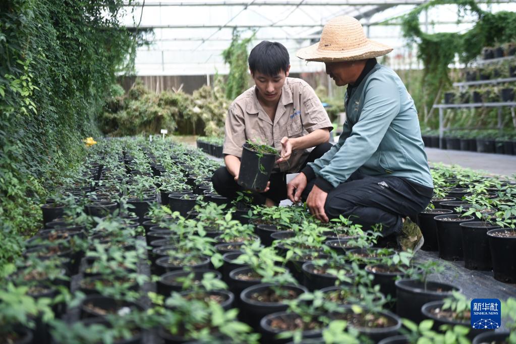 9月21日,在杭州市臨安區昌化鎮中草藥種植基地,郭二彪(左)給一農戶(hù)進(jìn)行技術(shù)指導。農業(yè)專(zhuān)業(yè)研究生畢業(yè)的郭二彪目前是中草藥種植基地的技術(shù)骨干。