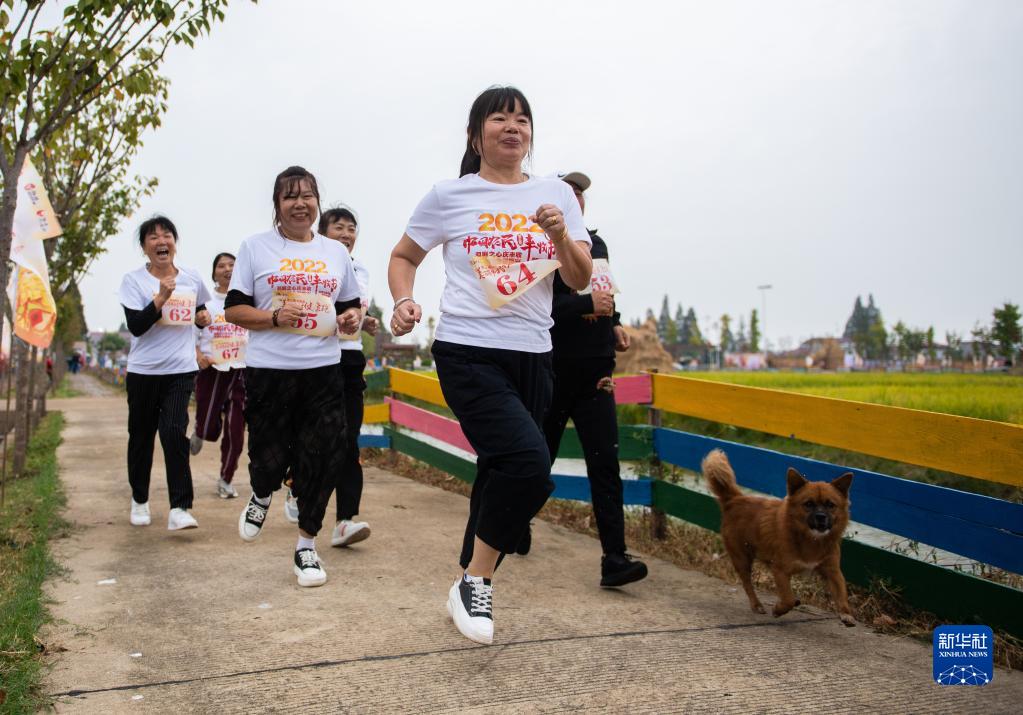 9月21日,在益陽(yáng)市南縣麻河口鎮東勝村,當地村民和游客在參加“美麗鄉村健康跑”活動(dòng)。