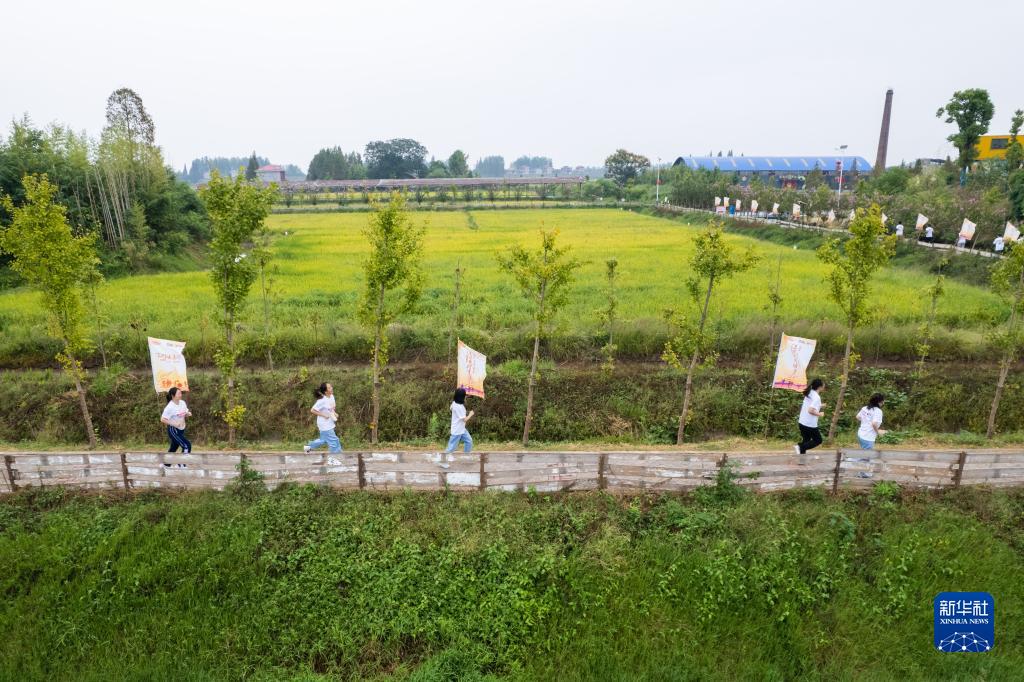 9月21日,在益陽(yáng)市南縣麻河口鎮東勝村,當地村民和游客在參加“美麗鄉村健康跑”活動(dòng)(無(wú)人機照片)。