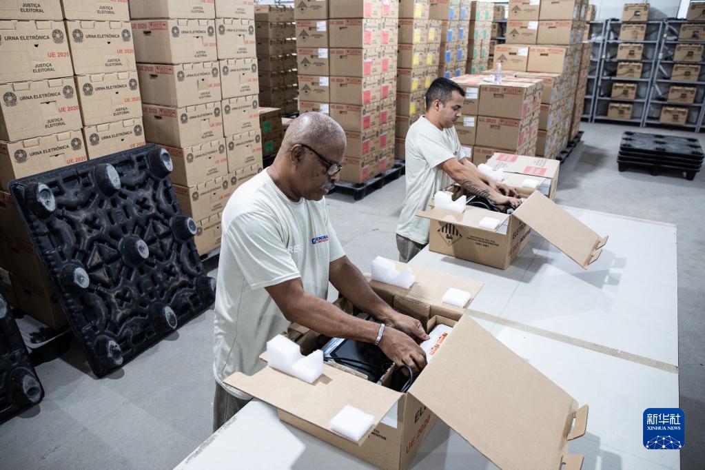 9月21日,在巴西里約熱內盧,工作人員參與大選電子投票箱的密封工作。