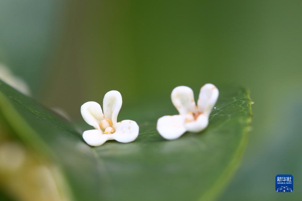 云南省曲靖市,桂花落在綠葉上(9月13日攝)。
